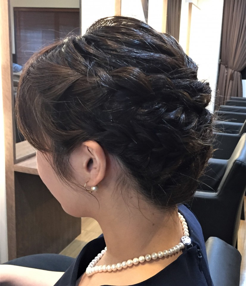 まずはボブの方☆ 肩くらいの長さなのですが、編み込みで全部アップにさせて頂きました! ボブの短い方でもアップ出来ますよ!!